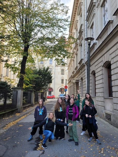 zwiedzaliśmy miasto, weszliśmy na szczyt Dębowiec, zrobiliśmy bączki i zagraliśmy w grę Drejdel, dużo tańczyliśmy, ucztowaliśmy i robiliśmy wiele innych rzeczy
