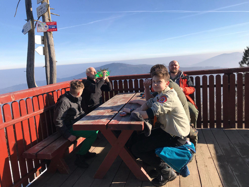 Następnego dnia wstaliśmy już o piątej, by szybko wyruszyć na Luboń Wielki. Po drodze byliśmy świadkami pięknego wschodu słońca, zjedliśmy też część kanapek przygotowanych poprzedniego dnia. Podziwialiśmy tez widok na Tatry. Podejście było bardzo strome.