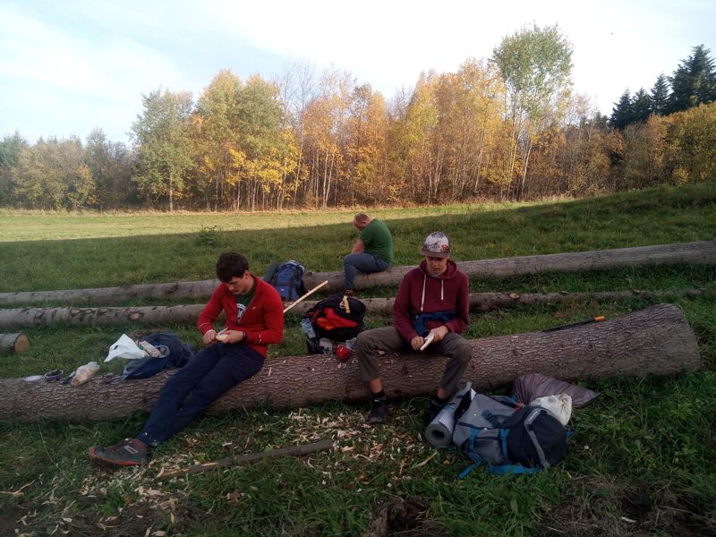 Czuwaj, 29 października na górze Chełm w Beskidzie Makowskim odbył się pierwszy biwak Bushcraftowy zastępu Pustelników. Uczestnicy skupili się na kontakcie z naturą i cieszeniem się pięknem polskiej jesieni w górach. Podczas biwaku, który upłynął nam w przyjacielskiej, wesołej atmosferze, uczestnicy zdobyli wiedzę i umiejętności jak gotować proste i przepyszne dania na ognisku z prostych składników. Oprócz tego skauci po biwaku poćwiczyli umiejętność bezpiecznego rozpalenia i podtrzymania ognia oraz biwakowania. Rarytasami, które mieliśmy przyjemność przyrządzić i zjeść był gulasz, prażonka, podpłomyki w różnych odsłonach oraz "indiański chlebek". Większość dań przygotowywaliśmy w tradycyjnym Porębskim, żeliwnym kociołku. Na koniec uprzątnęliśmy obozowisko, bardzo dokładnie gasząc ognisko i maskując wszystkie ślady naszej bytności. W drodze na pociąg powrotny mieliśmy możliwość wyrzeźbienia łyżki z drewna, które każdy mógł zabrać do domu. Każdy uczestnik na zakończenie biwaku otrzymał naszywki okolicznościowe projektu Radka z zastępu zwiadowców, które poświadczają ukończenie szkolenia-biwaku. Dziękuję wszystkim skautom, którzy byli na biwaku za zaangażowanie i wkład jaki włożyli w ten wyjazd.