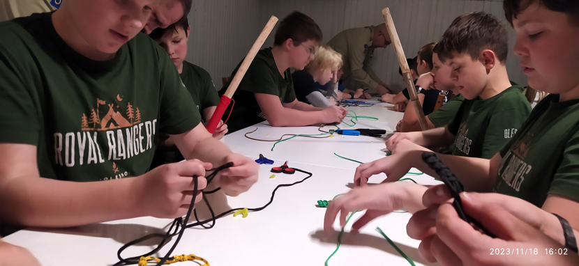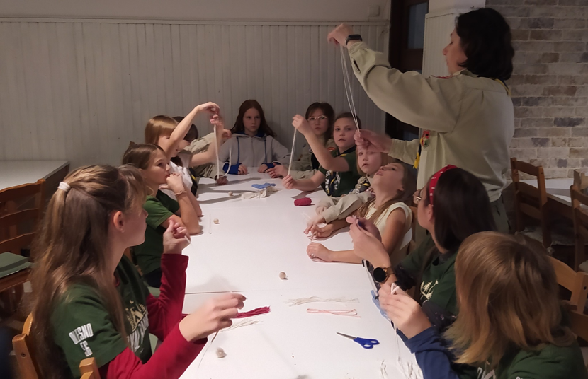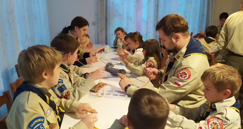 . Na wędrówce podziwialiśmy piękne widoki i cieszyliśmy się z opadów śniegu. Na warsztatach skautowych wyplataliśmy pierścienie, robiliśmy bransoletki, oploty na laskach skautowych, makramowe aniołki oraz tablicę z węzłami