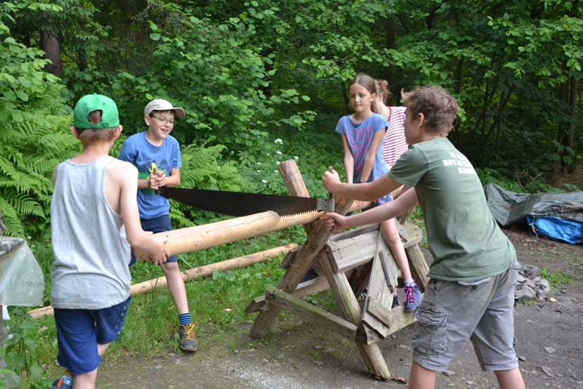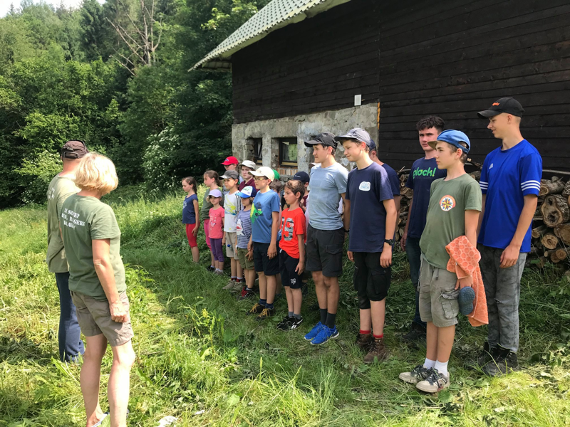 To był nasz ostatni biwak przed wakacjami 2019. W upalną sobotę (uff... ponad 30 stopni) dotarliśmy do naszej bazy w Rabie. Od ostatniego pobytu okoliczne trawy wybujały tak obficie, że trzeba było wykosić (tutaj niektórzy próbowali swoich sił z ostrą kosą). Pozostali mogli poćwiczyć strzelanie z łuku lub zebrać poziomki. Po smacznym obiedzie gulaszowym przygotowanym na ognisku przez zastęp młodszych chłopców - niespodzianka - ruszyliśmy nad rzekę Rabę, żeby się trochę ochłodzić. Tam niektórzy zajęli się wesołym pluskaniem - a grupa inżynierów wodnych zmieniała bieg rzeki. Przemoczeni ale ochłodzeni wróciliśmy do obozu, gdzie po krótkim odpoczynku rozpoczęły się zabawy przygotowane przez najstarszy zastęp chłopaków, którzy specjalnie przyjechali już w piątek wieczorem.