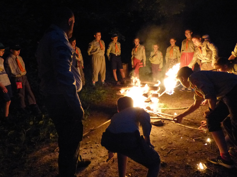 Wesoło spędziliśmy czas do kolacji a po zmroku poszliśmy na obrzędowe ognisko, gdzie uroczyście przyrzekało kilkoro nowych skautów a na koniec dh. Staszek podzielił się gawędą.
